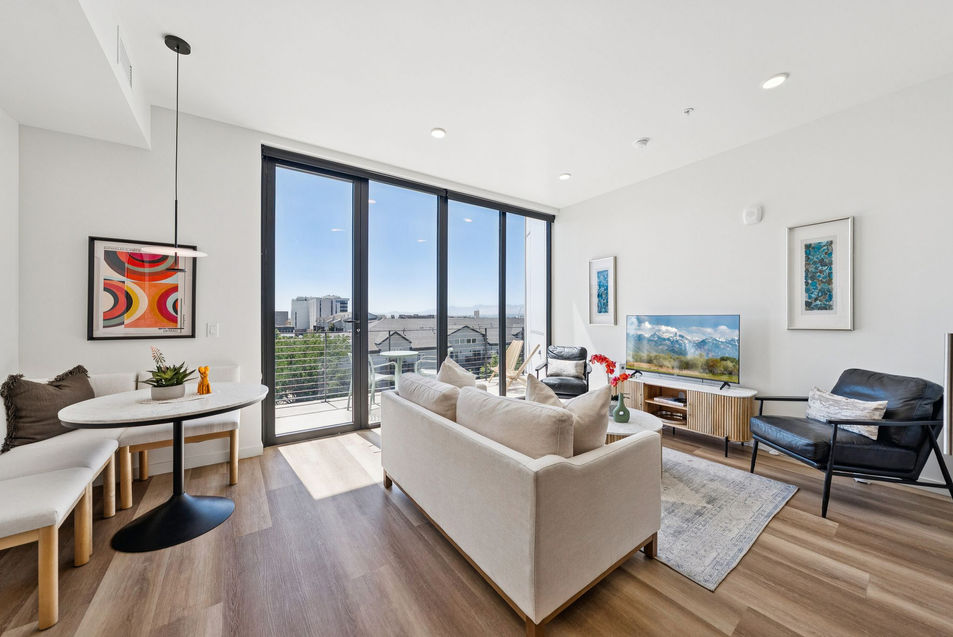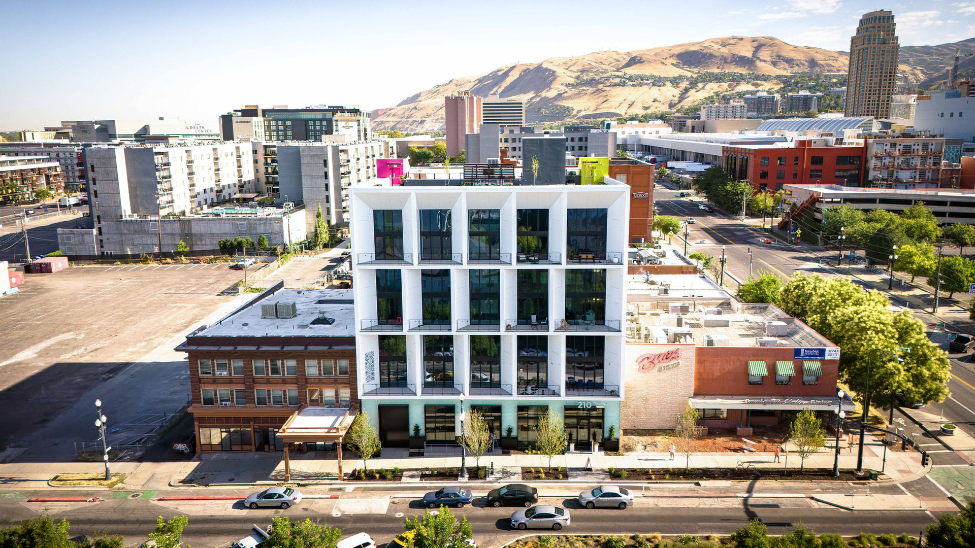 floor units boast two-story spaces and spectacular downtown views. A generous roof deck ensures usable open space exclusive to residents. The project offers a 24/7 live/work/ play/shop/dine lifestyle in the amenity-rich, environment of downtown Salt Lake City.
