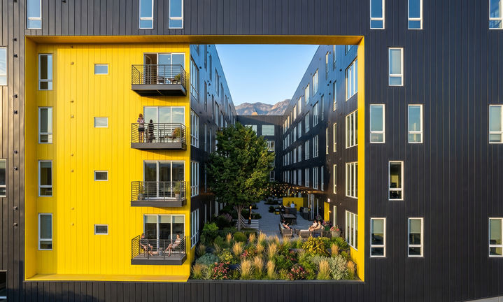 The Cadre Apartments project is a 7-story apartment building in Salt Lake City. The building will offer cutting-edge modern design, open floor plans, and generous daylight. Designed by award-winning firm Axis Architects, all units provide an unrivaled combination of form and function. This new community is located in one of Salt Lake City’s forward-looking Transit Station Area zones and anchors one of the city’s next great eclectic precincts, directly west of downtown. The neighborhood is adding restaurants, housing and amenities. Additional, varied housing opportunities are in the works. The Cadre Apartments is Phase Two of a project that responds to a burgeoning demand for affordable housing close to downtown, with direct access to quality restaurants, theaters and night life.